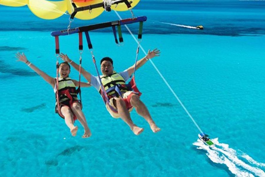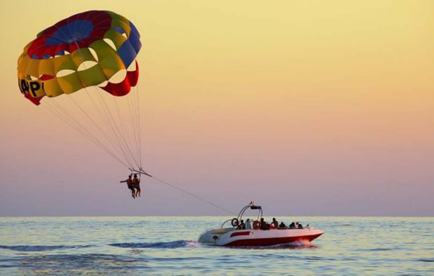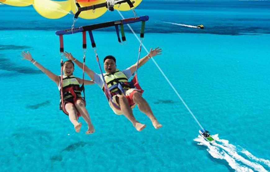Feel the adrenaline as you glide smoothly through the air, enjoying panoramic views of the coastline and turquoise sea. After landing safely back on the boat, you will be transferred back to your hotel with amazing memories of your parasailing experience.